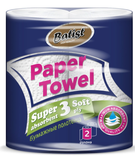 Полотенце бумажное Батист 3 слоя 2 рулона (12м) белые 1/12