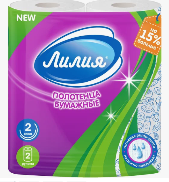 Полотенце бумажное Лилия 2рулона 2слоя 1/12