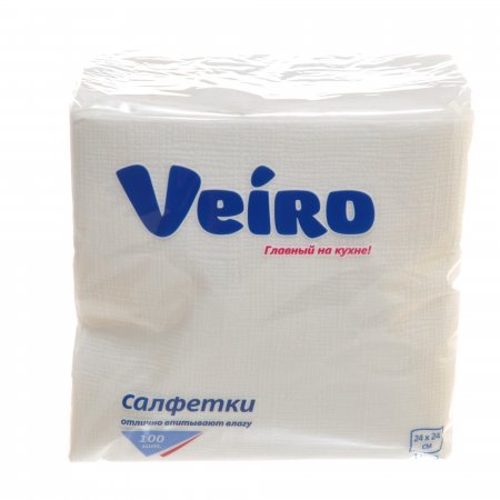 • Салфетки Veiro 100 л. 1 слой столовые сервировочные белые