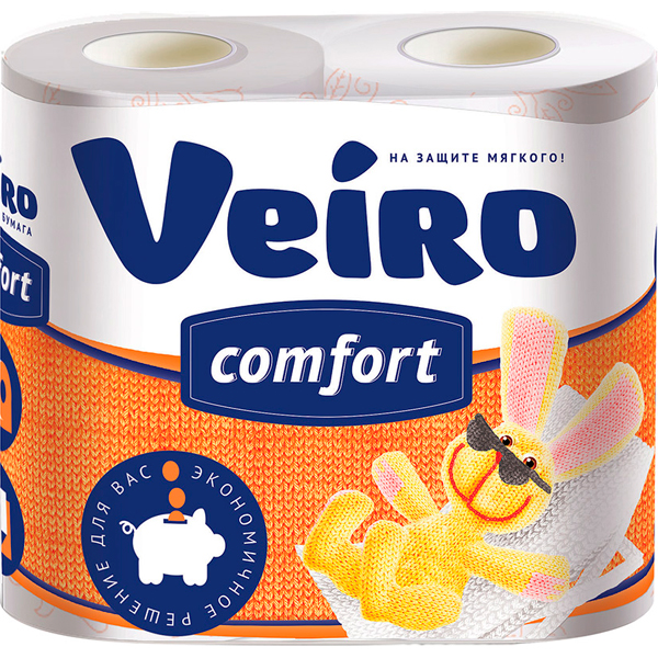 Бумага туалетная Виеро 4рулона 2слоя белая Комфорт