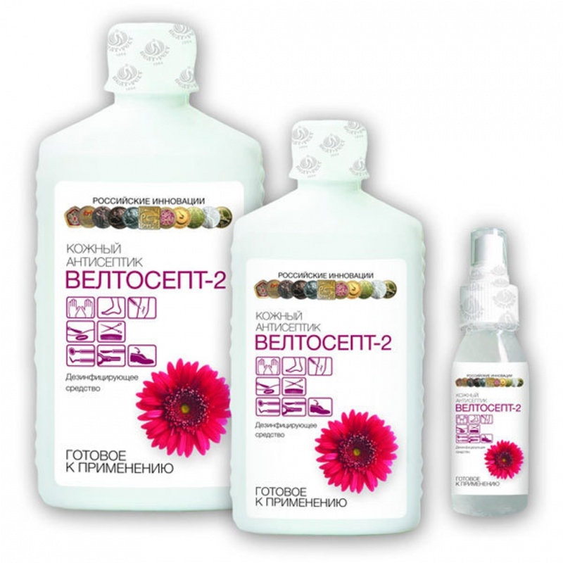 Российская дезинфекционная субстанция «ВЕЛТОН» (клатрат четвертичного аммониевого соединения с карбамидом) и изопропиловый спирт – 70,0%.
