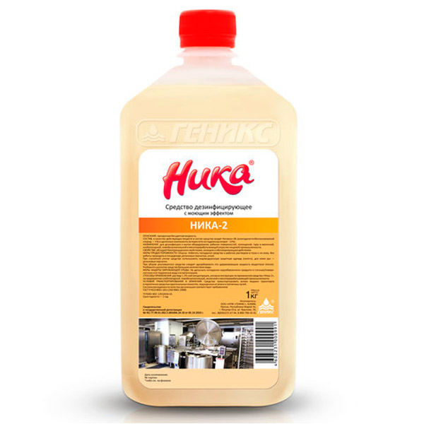 Ника-2 - это дезинфицирующее средство с моющим эффектом для очистки рабочих поверхностей от микробов, вирусов и высокой степени загрязнения. Раствор, очищает поверхности от бактерий золотистого стафилококка, сальмонеллы, от кишечной палочки и спорообразующих, в том числе плесени и дрожжей. Он не оказывает негативного влияния как на резиновые, так и на металлические изделия, в частности нержавеющие (на основе сталей с содержанием хрома и никеля). Рекомендуется при обработке щелочеустойчивых пластмасс. После смывания водой и высыхания рабочая поверхность не оставляет после себя желтого или белого налета (солевых отложений).