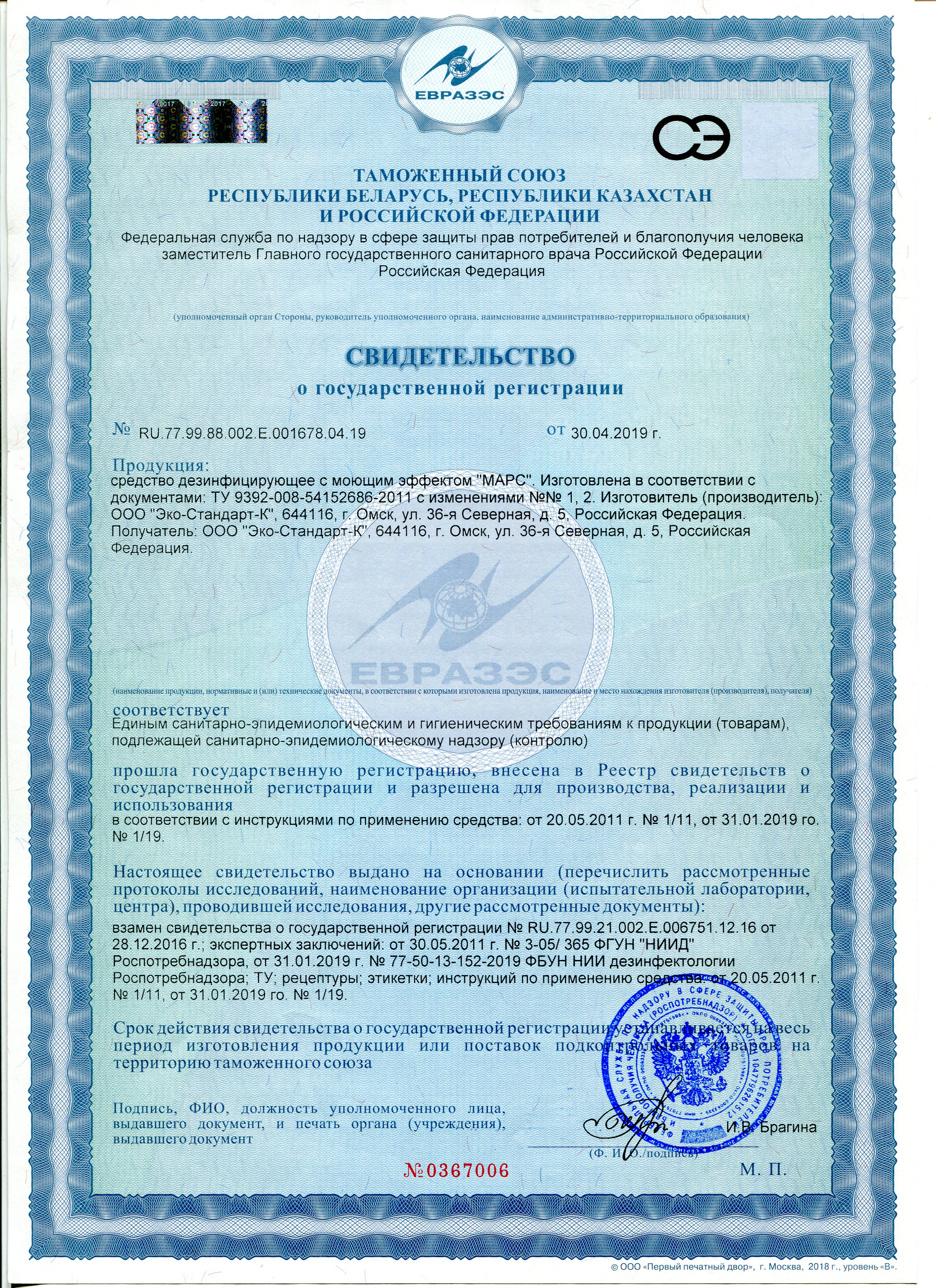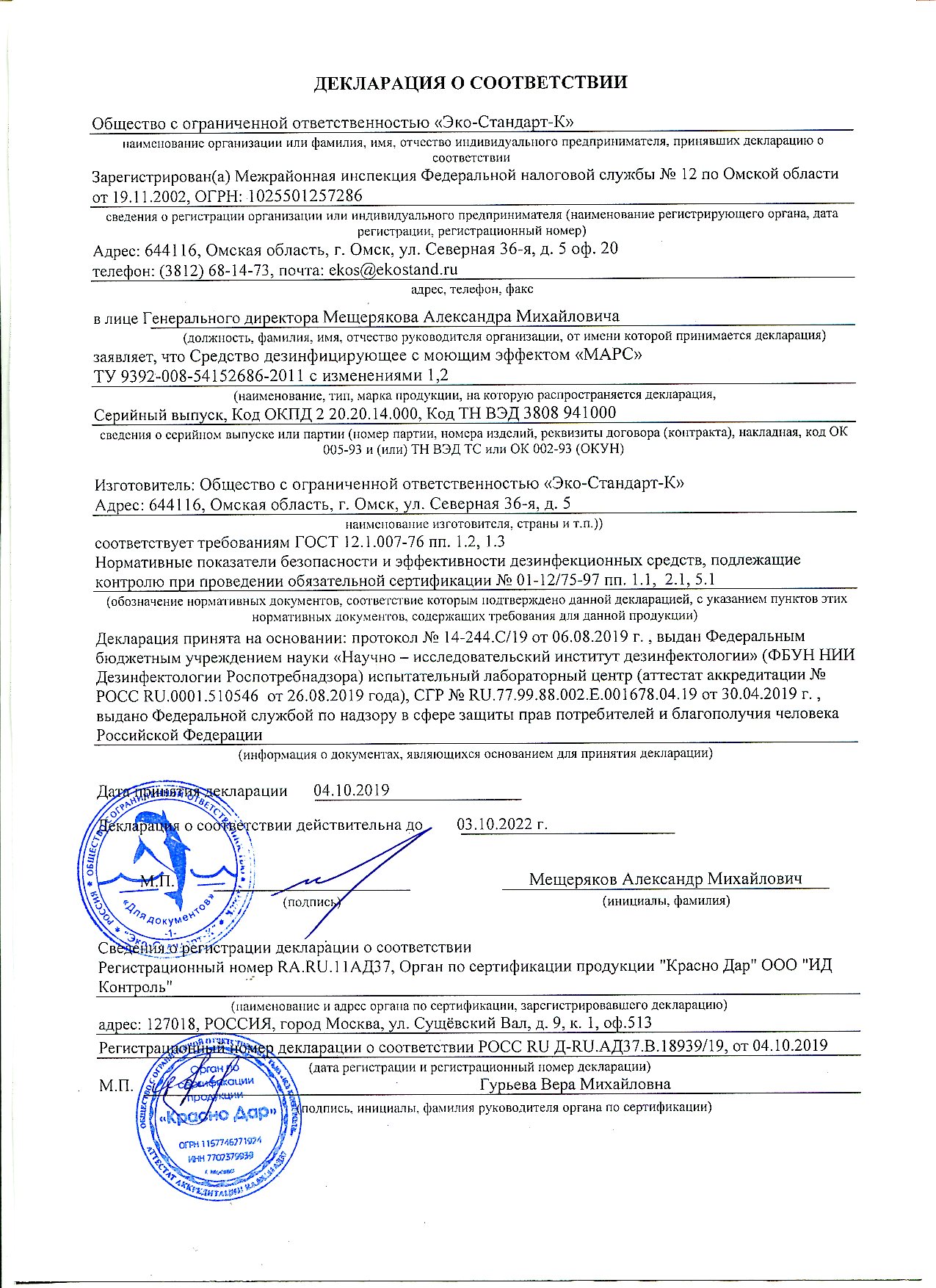 Средство для дезинфекции и мойки скорлупы яиц МАРС 1л