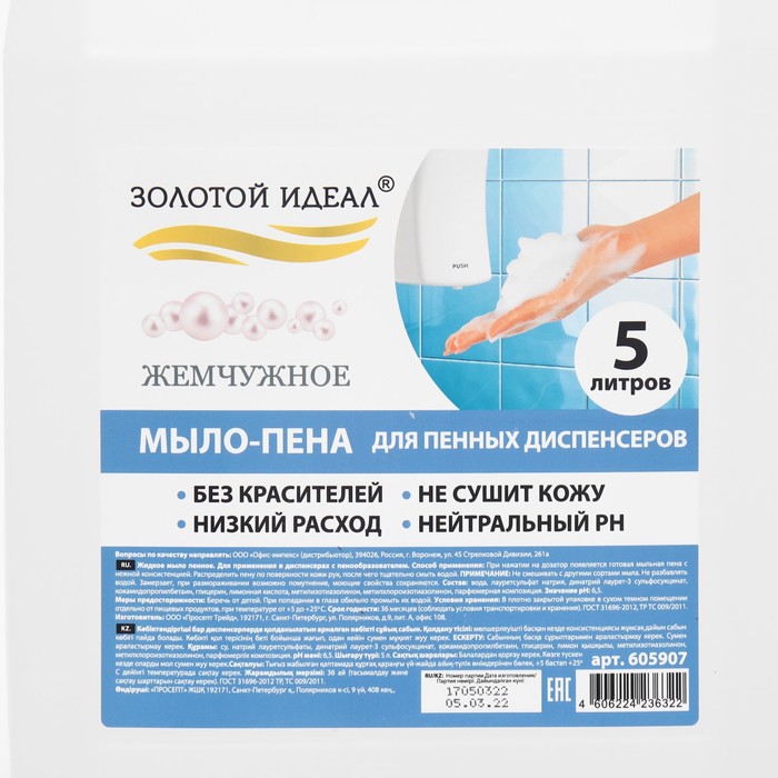 Мыло-пена для специальных диспенсеров 5 л ЗОЛОТОЙ ИДЕАЛ Жемчужное