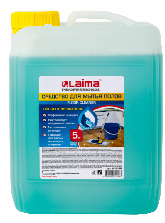 • Средство для мытья пола LAIMA "PROFESSIONAL" обладает высоким уровнем чистящей способности и придаёт блеск обработанным поверхностям, создавая эффект защитной плёнки. Подходит для любых поверхностей: линолеум, паркет, ламинат и т.д.