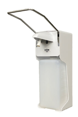 Диспенсер локтевой для мыла и дезинфицирующих средств НАЛИВНОЙ, 1 л, с еврофлаконом, HOR