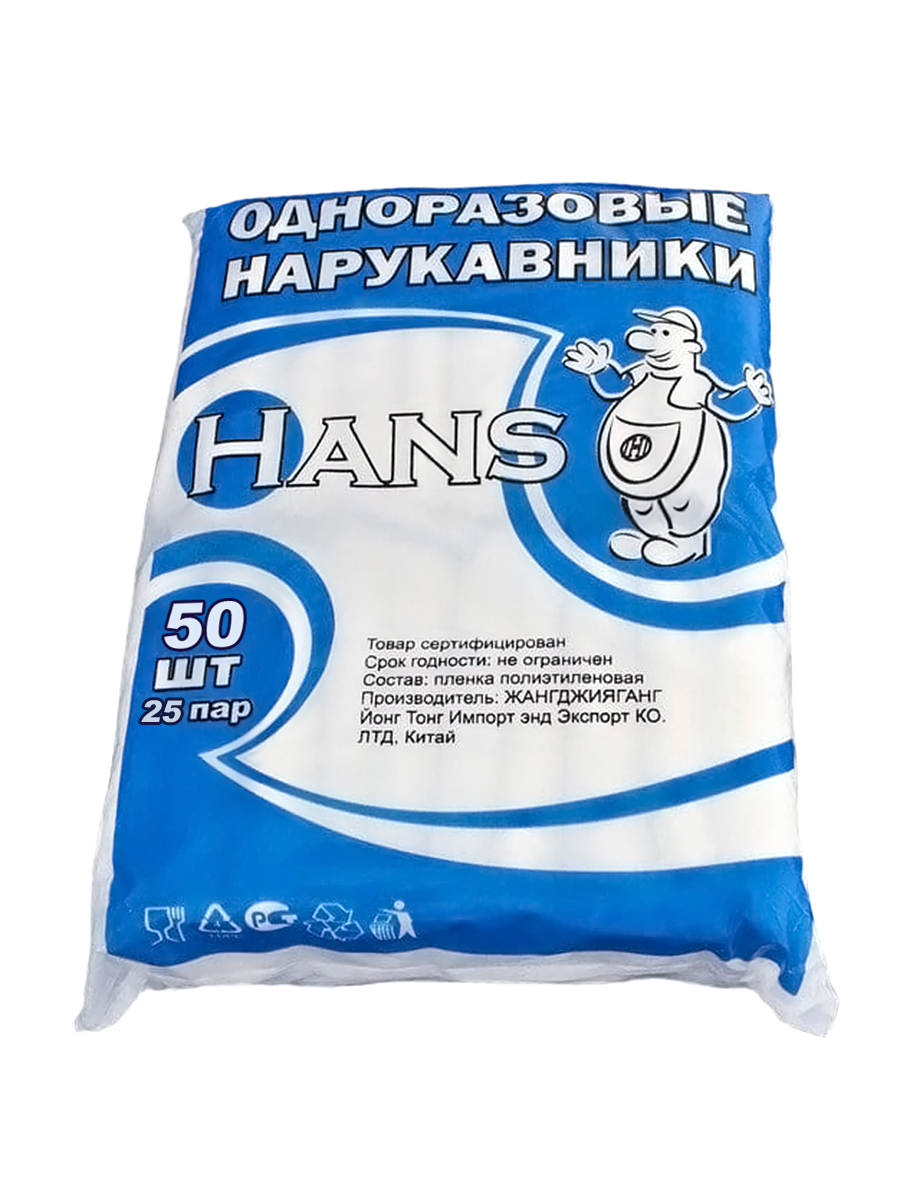 Одноразовые нарукавники, сделанные из полиэтилена низкого давления, представляющего собой антистатичный материал; используются для защиты одежды и рук от влаги, неспецифических производственных загрязнений, пыли. Полностью соответствуют санитарным требованиям. Удобно фиксируются на руке с обеих сторон благодаря резинкам шириной 4 мм. Применение: в медицине, в пищевой промышленности.