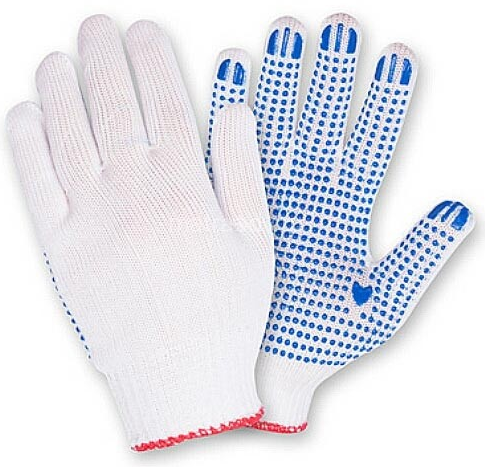 • Перчатки х/б с ПВХ "точка" относятся к средствам защиты рук от загрязнения и различных механических воздействий: порезов, заноз, ссадин, тепловых ожогов, а также воздействия химикатов.