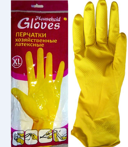 • Перчатки хозяйственные латексные,Предназначены для хозяйственно-бытовых работ и уборки. Защищают от воды, пыли, грязи, воздействия чистящих и моющих средств бытовой химии. Рельефная поверхность ладони для защиты от скольжения