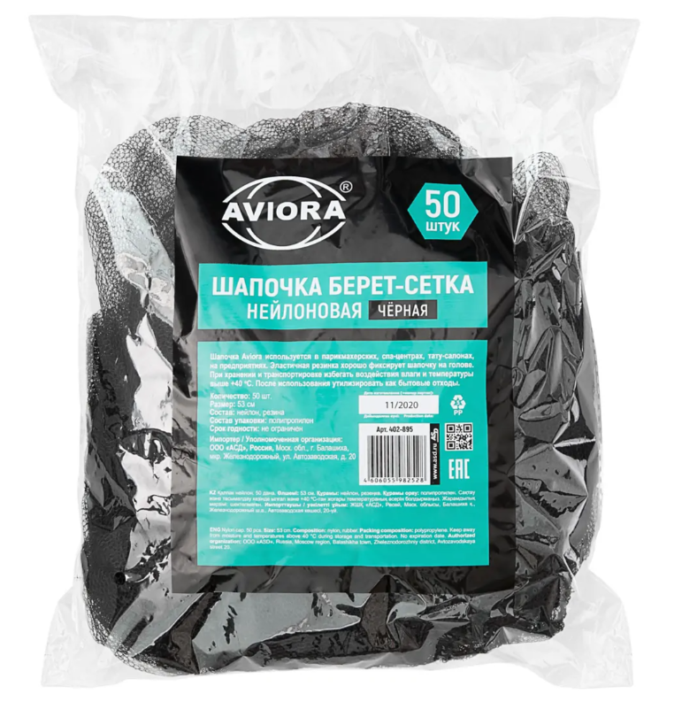 Шапочка нейлоновая чёрная 1/50