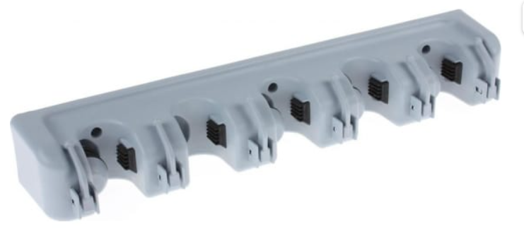 Настенный держатель для швабр сэкономит место для хранения бытовых и хозяйственных принадлежностей. Дизайн крепления позволяет организовать все швабры, щетки и совки в одном месте. Регулируемые резиновые ролики надежно фиксируют ручки инвентаря, а на дополнительных крючках можно разместить полотенца, мочалки и прочую мелкую утварь.