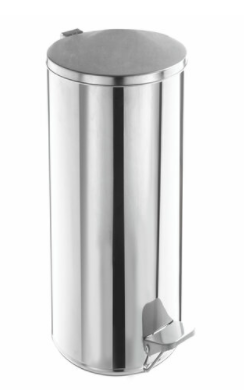 Ведро-контейнер для мусора 30л с педалью УСИЛЕННОЕ кольцо под мешок, нержавеющая сталь, хром