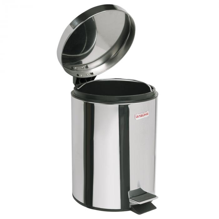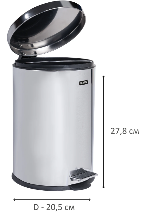 5 л - подходящий объем при небольшой проходимости. Оборудовано педалью для открывания. Крышка плотно прилегает, тем самым препятствуя распространению запахов. Внутреннее съемное пластиковое ведро имеет удобную рукоятку для извлечения. Изготовлено из нержавеющей стали со специальным антикоррозийным покрытием, что обеспечивает максимально долгий срок службы. Ведро устойчиво благодаря антискользящему основанию. Объем рекомендуемого мешка - 10 л. Контейнер для мусора в стальном цвете с зеркальным покрытием имеет компактные размеры (28х20,5х20,5 см) и отлично впишется в любой интерьер.