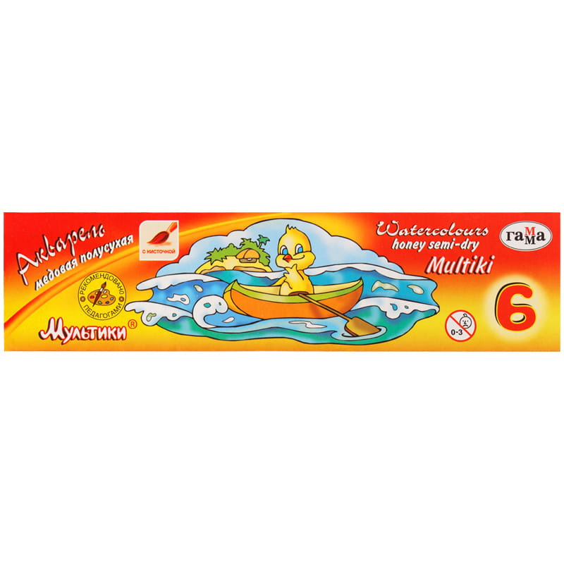 Акварель Гамма Мультики медовая 6 цветов с кистью картон