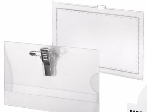 Бейджи горизонтальные (57х90 мм), с клипсой и булавкой, жесткие