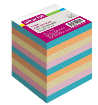 Блок для записей Attache 90x90x90 мм разноцветный (плотность 80 г/кв.м)