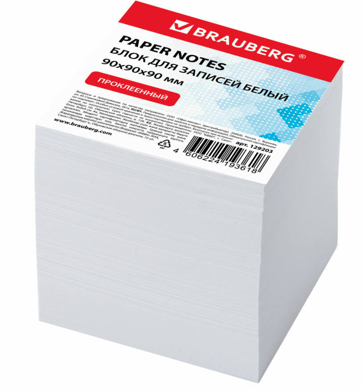 Блок для записей BRAUBERG проклеенный куб 9х9х9 см белый белизна 95-98%
