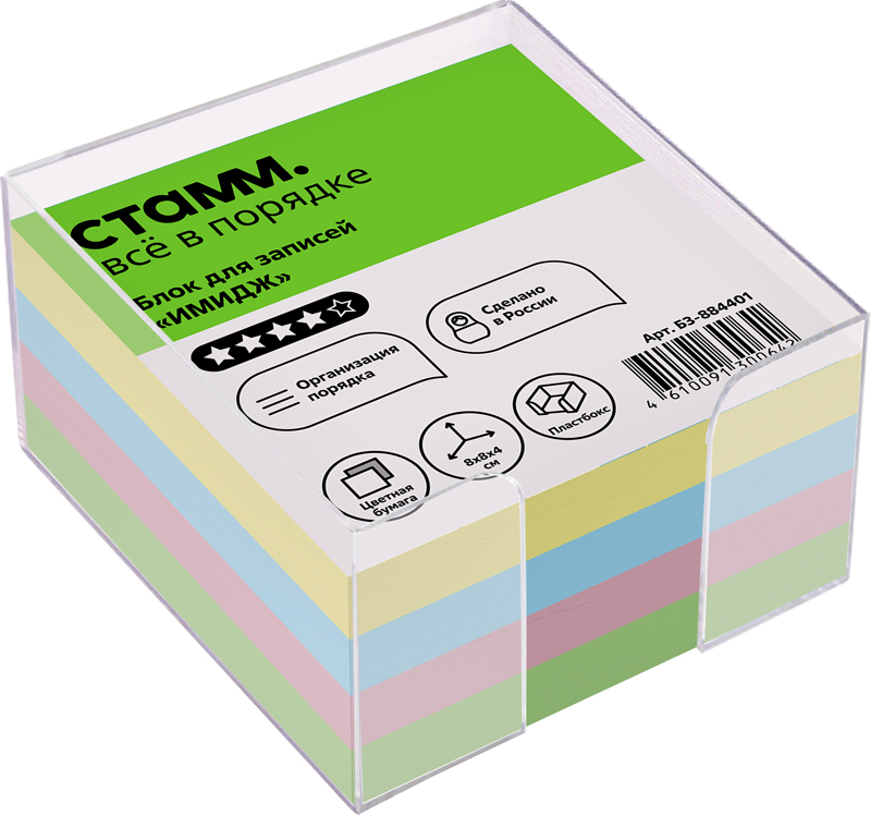 Блок для записи 8*8*4см в пласт бокс цветной