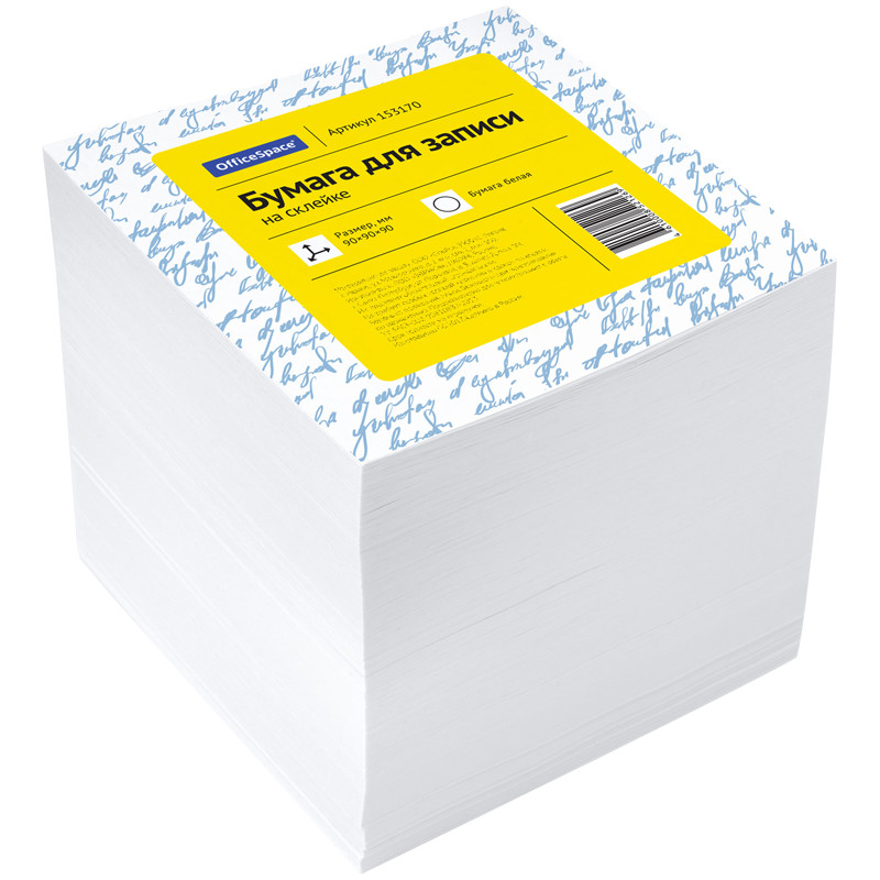 Блок высотой 9 см сложен из квадратных листов размером 9х9 см. Листы изготовлены из высококачественной офсетной бумаги плотностью 60 г/м2 и белизной 90-92%. Блок для записей подходит для письма любыми типами ручек и карандашей. Поставляется в плотной термоусадочной пленке, защищающей при транспортировке. Может использоваться как в пластиковых подставках для настольных органайзерах, так и без подставок, поскольку листы проклеены по одной стороне, что делает блок устойчивым и листы не рассыпаются.