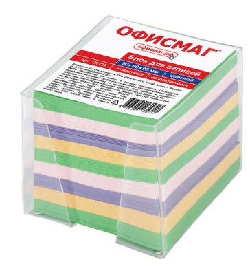 Блок для записи 9*9*9см цветной в подставке прозрачной