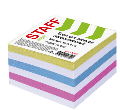Блок для записи 9х9х5 см цветной, чередование с белым непроклеенный