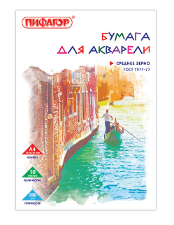 Бумага для акварели А4 10листов Пифагор