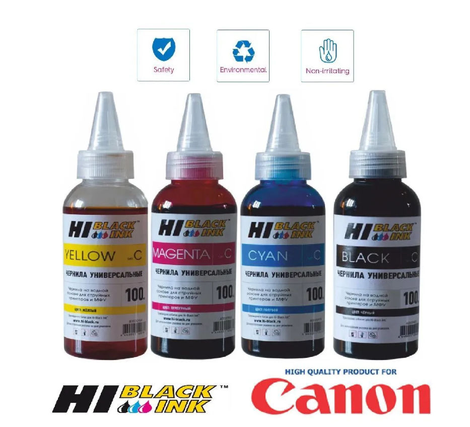 • В наборе 4 флакона, черный цвет - 135 мл, голубой – 70 мл., желтый – 70 мл, пурпурный – 70 мл.