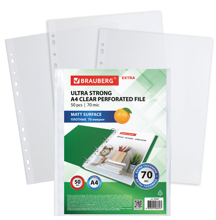 Файлы А4 папка-вкладыш с перфорацией 70 мкм 1/50