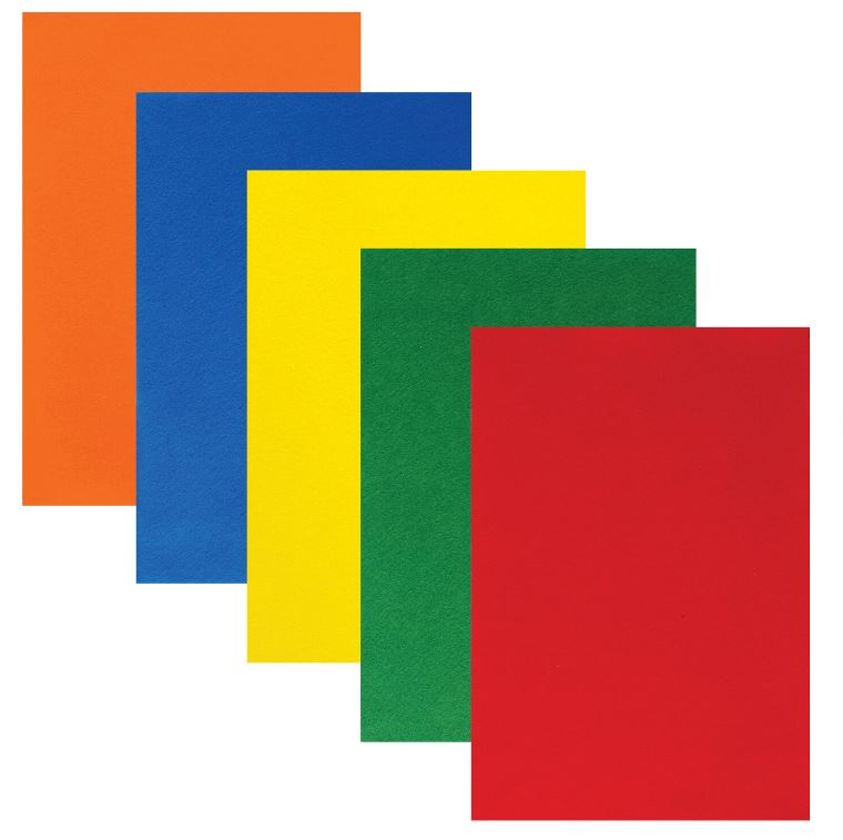 Фетр цветной мягкий А4 2мм 5л 5цв плотность 170 г/м2