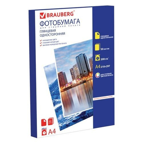 Фотобумага А4, 200 г/м2, 50 листов односторонняя глянцевая