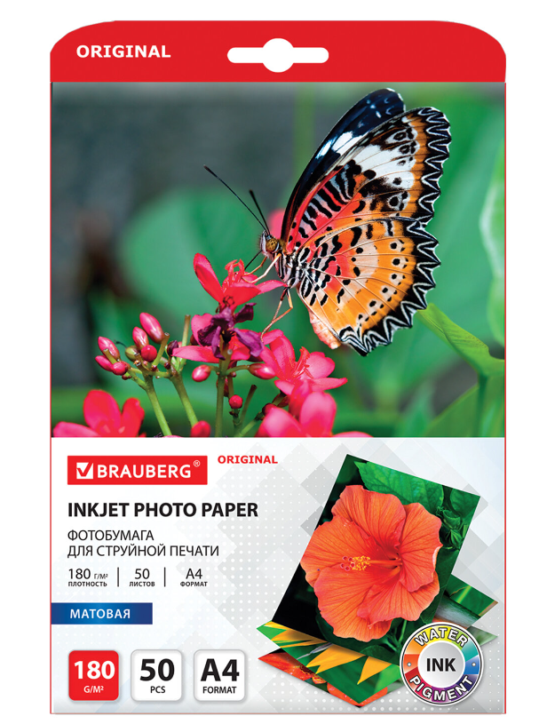Фотобумага матовая, А4, 180 г/м2, односторонняя, 50 листов