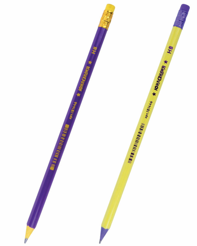 Карандаш чернографитный ЮНЛАНДИЯ НВ пластиковый корпус ассорти, с ластиком
