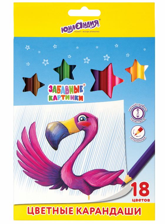 Карандаши цветные мягкие ЮНЛАНДИЯ 18 цветов