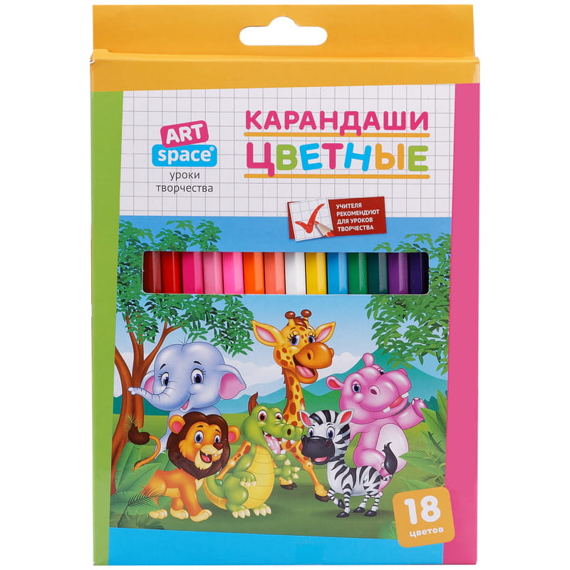 • Карандаши "Зверята" в наборе 18 цветов. Корпус изготовлен из дерева, форма корпуса шестигранная, заточены. Упакованы в картонную коробку с европодвесом