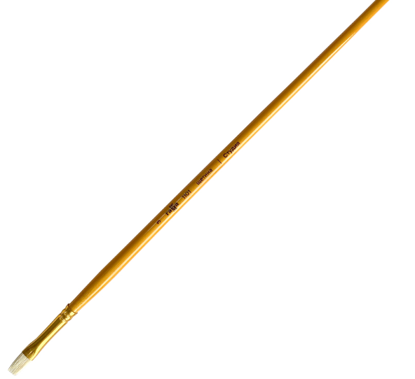 Художественные кисти ГАММА серии «Студия» идеально подходят для масляной живописи. Кисть плоской формы № 3 с длинной ручкой из берёзы, покрытой двумя слоями лака. Диаметр – 7 мм, а выставка, длина волоса от обоймы до кончика кисти составляет 12 мм. Ворс кисти изготовлен из натуральной свиной щетины. Этот материал давно применяется для художественных кистей: он в меру жесткий, износостойкий и благодаря своей упругости позволяет контролировать мазок. Кисти придается чашеобразная форма, позволяющая набрать максимальное количество краски на кисть. • Номер: 3; • Форма кисти: плоская; • Волос: щетина; • Тип ручки: длинная; • Ширина: 7 мм; • Выставка: 12 мм