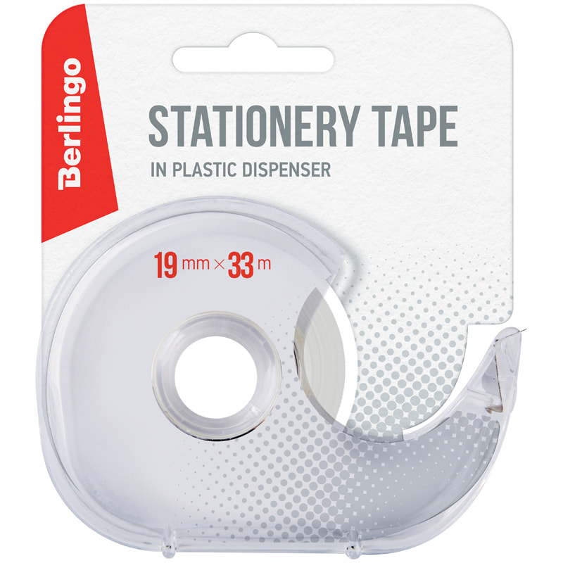 • Прозрачная клейкая лента в пластиковом диспенсере. Ширина - 19мм. Намотка - 33м.