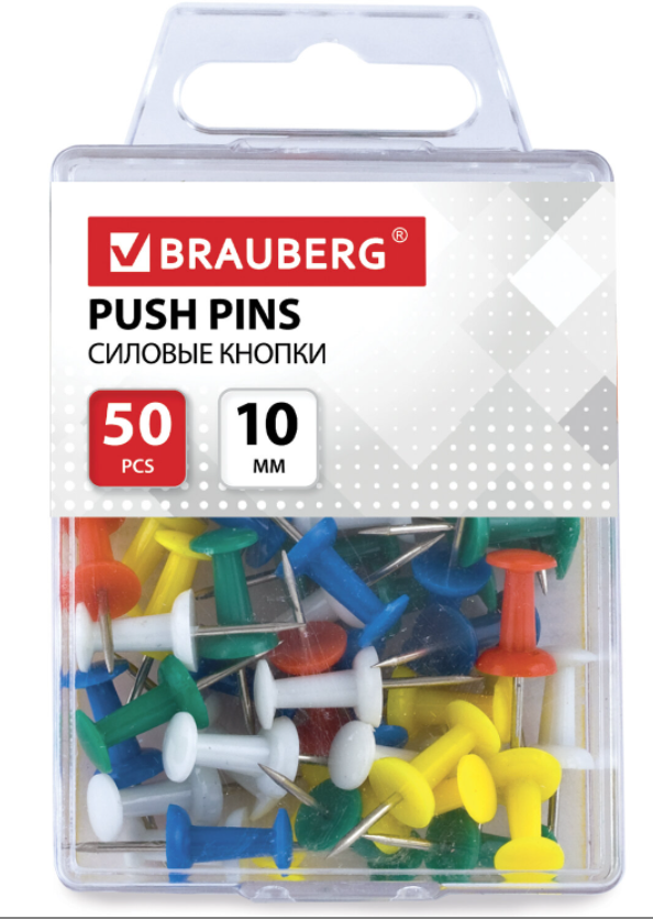 Кнопки-гвоздики силовые цветн.пластик (50 шт/уп), в пластиковой коробке