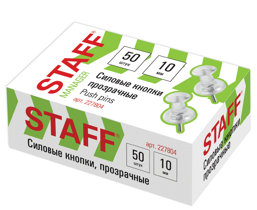 Кнопки силовые гвоздики прозрачные STAFF 50 штук, в картонной коробке