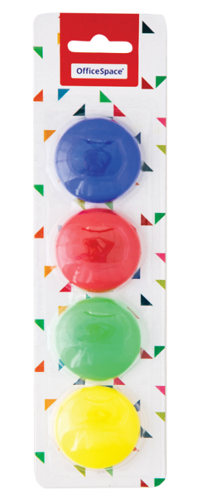 Магниты для досок 40мм, 4шт., ассорти, блистер