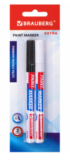 Маркер-краска лаковый EXTRA (paint marker) 2 мм, НАБОР 2 цвета, БЕЛЫЙ/ЧЕРНЫЙ