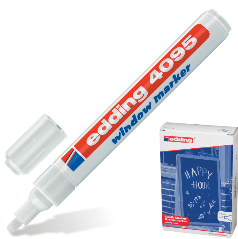 Маркер меловой EDDING 2-3 мм, БЕЛЫЙ, влагостираемый, для гладких поверхностей