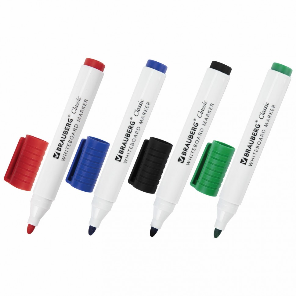 Маркеры стираемые для белой доски НАБОР 4 ЦВЕТА, BRAUBERG