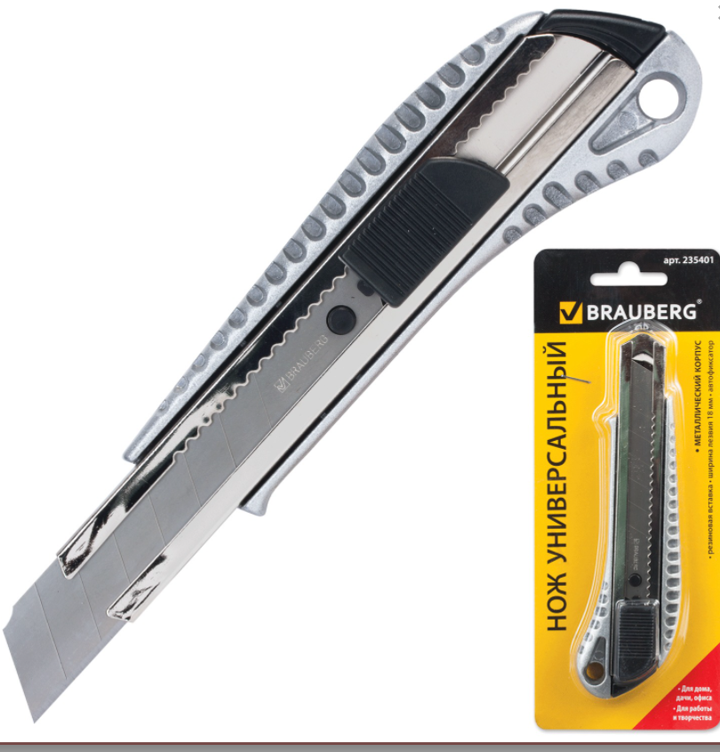 Канцелярский нож BRAUBERG «Metallic» – незаменимый инструмент для разрезания бумажных или картонных листов, линолеума, кожи и других плоских поверхностей. Оставляет ровный, без зазубрин разрез, что особенно важно при соблюдении точности резки.