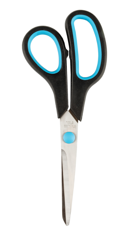 • Ножницы для работы с бумагой, картоном, тканью и пленкой. Материал корпуса - нержавеющая сталь высокого качества. Пластиковые ручки с резиновыми вставками позволяют надежно фиксировать ножницы в руке. Длина ножниц-19 см.