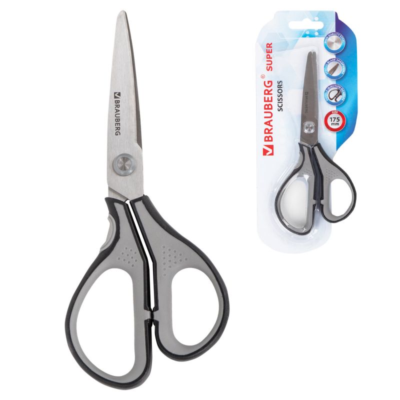 Ножницы 210 мм серо-черные 2-х сторонняя заточка эргономичные ручки