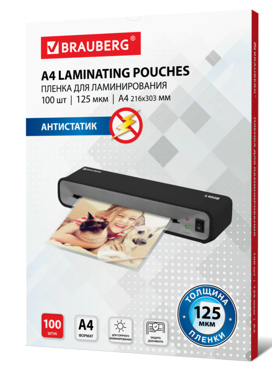 Пленки-заготовки для ламинирования АНТИСТАТИК, А4, КОМПЛЕКТ 100 шт., 125 мкм
