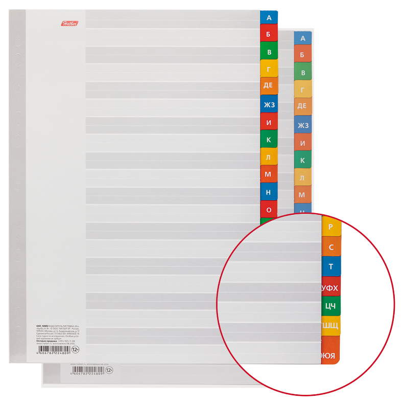 Разделитель листов А4 (20 листов 297х225 мм) картонные, алфавитный А-Я