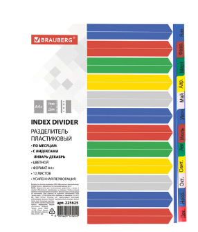 Разделитель пластиковый широкий BRAUBERG А4+ 12 листов Январь-Декабрь