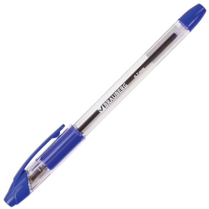 Ручка шариковая с грипом синяя корпус прозрачный узел 0,7 мм линия письма 0,3