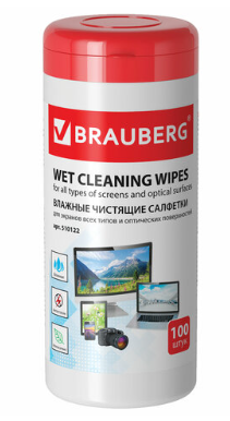 Салфетки влажные чистящие 100 шт для экранов всех типов и оптики , 13х17 см, туба